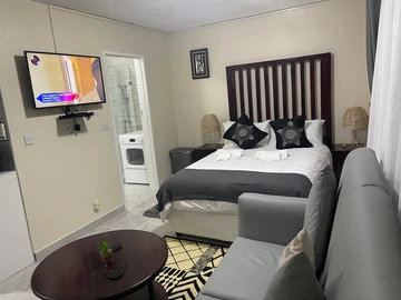 Spacious furnished 2 bedroomed flat, lounge, kitchen, bathroom, toilet, borehole, 24hrs security guard, well looked block